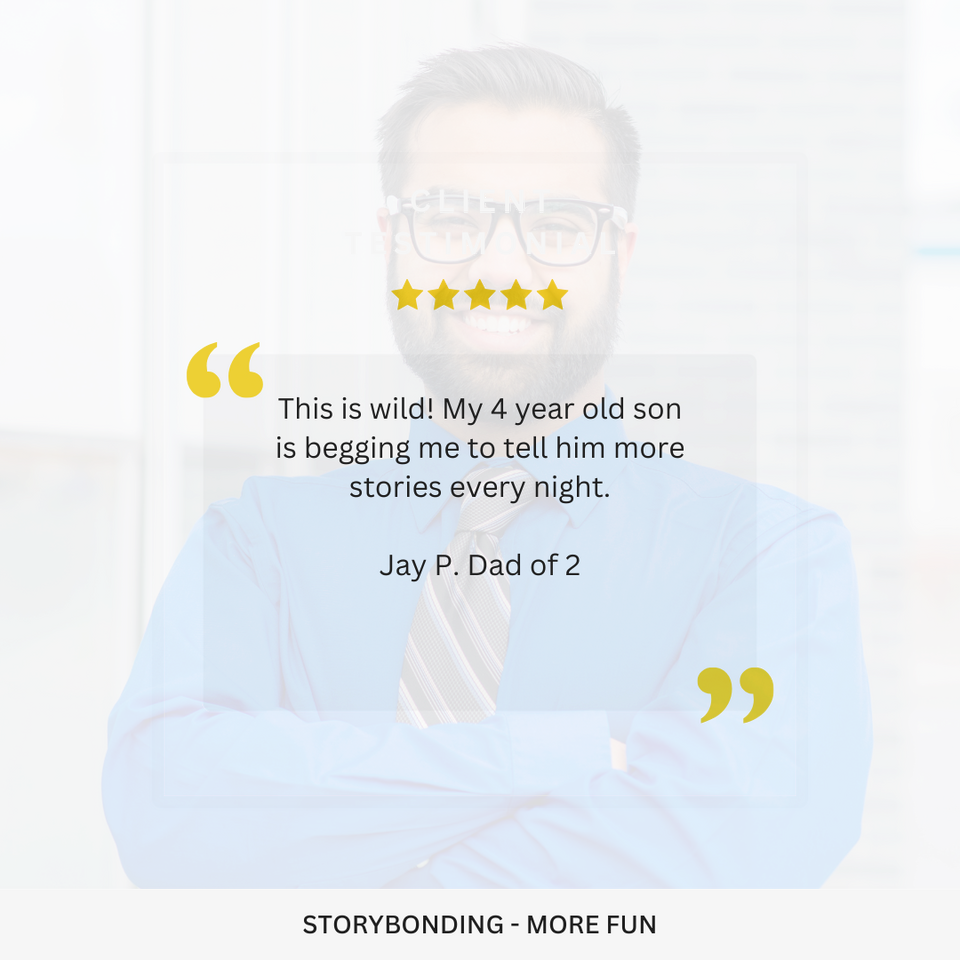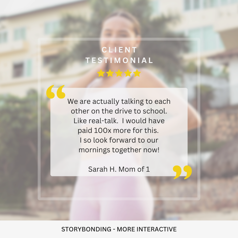 Join the StoryBonding Challenge.After this easy 7-day challenge, you will have a powerful new parenting technique.Car rides. Meal times. Time home together, or times when discipline is required. Serious talks and silly talks.All will improve.At the end of the challenge, you'll know the recipe for engaging storytelling that your child will respond to.