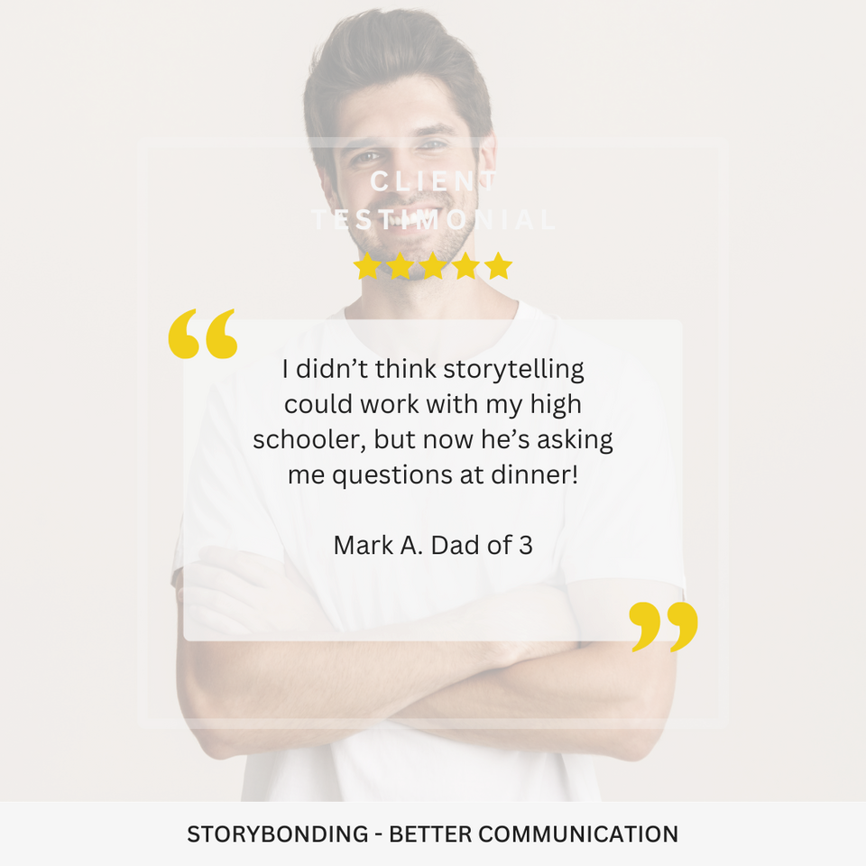 "Tell stories and my kids will open up and start talking to me? Is it really that simple?"Yeah, it is.I know. Sounds too good to be trueSee, up until the mid-1960s, storytelling (sharing personal anecdotes around a campfire, in a field or at home) was how we taught lessons and values to our children.Storytelling taught kids about their family's roots, values, and core beliefs. And more importantly, how to share, listen, and communicate effectively.But for some reason storytelling has gone away as a parenting tool. Maybe because of technology and screens. Or because it requires vulnerability. I don't really know.But what I do know is that it works.