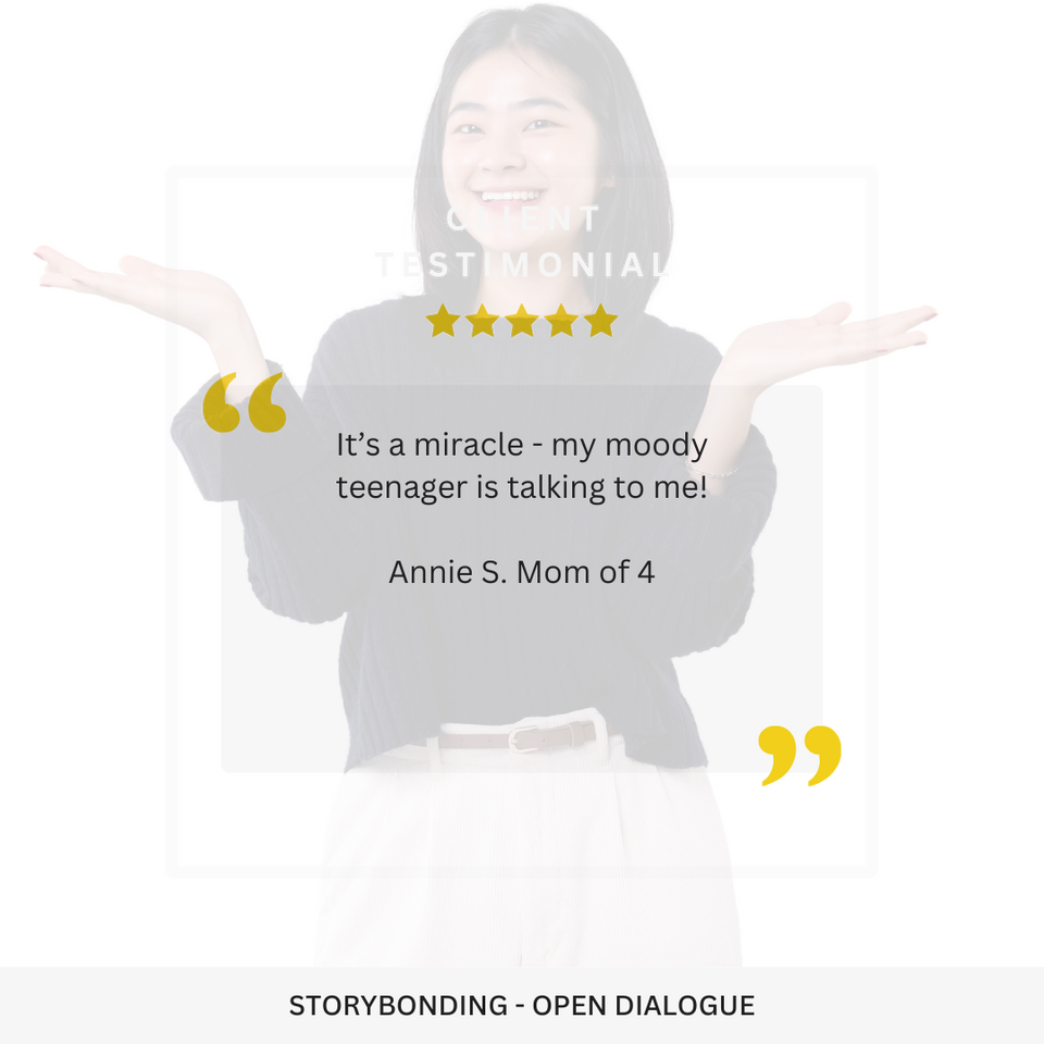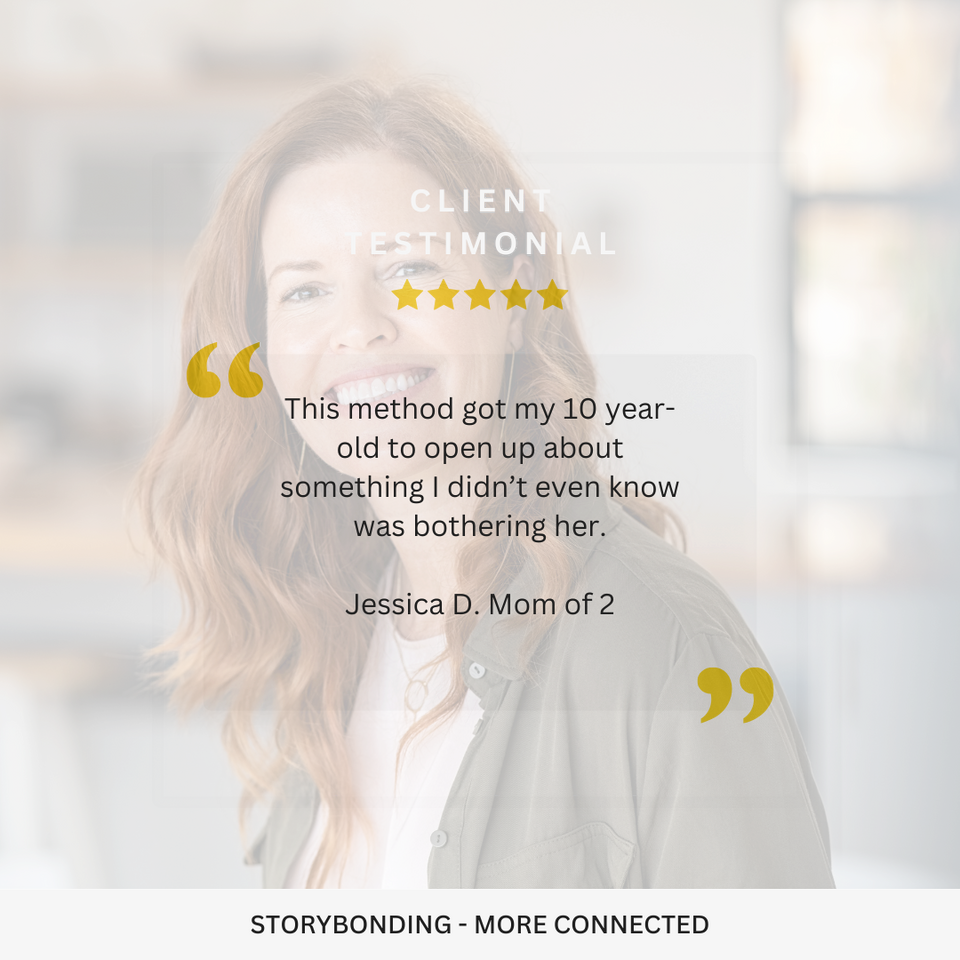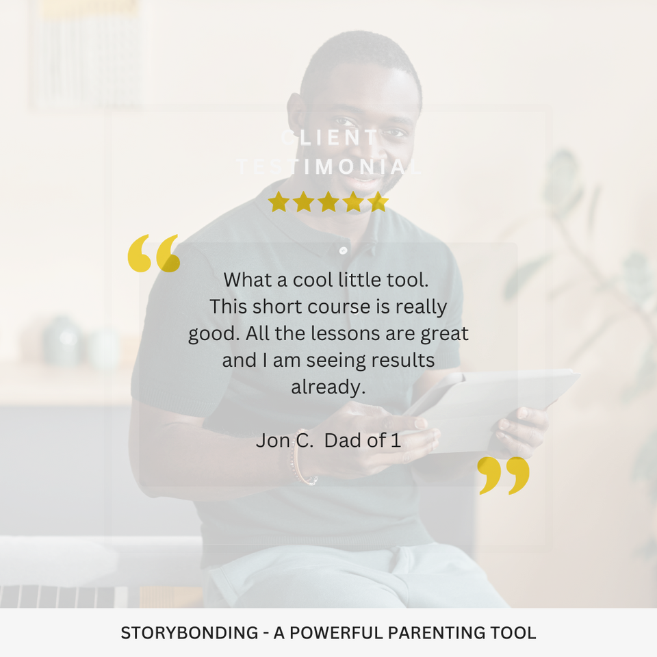Join the StoryBonding Challenge.After this easy 7-day challenge, you will have a powerful new parenting technique.Car rides. Meal times. Time home together, or times when discipline is required. Serious talks and silly talks.All will improve.At the end of the challenge, you'll know the recipe for engaging storytelling that your child will respond to.